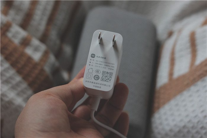底部则是四个防滑脚垫和电源部分,和之前的小爱音箱一样设计,方便收纳。采用DC 12V 1.25A标准电源接口。