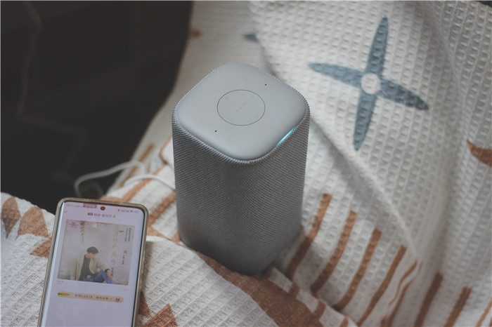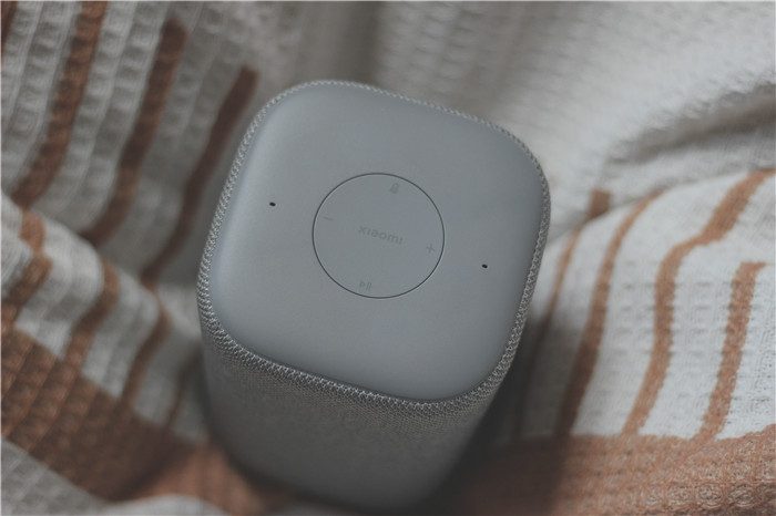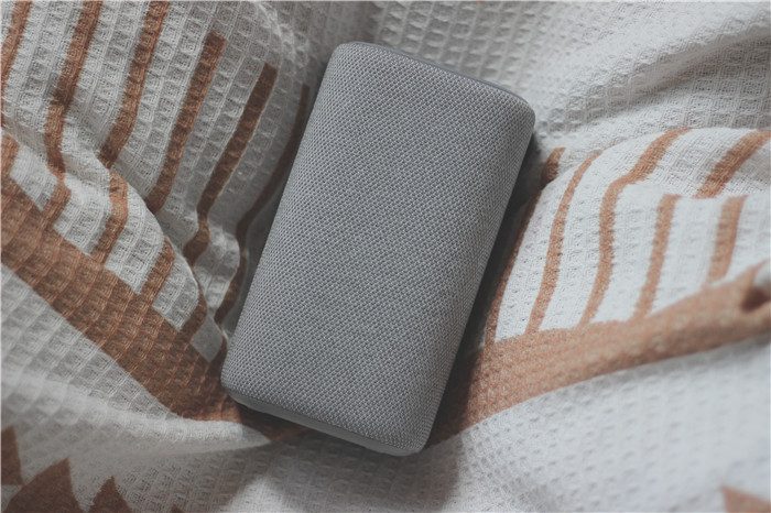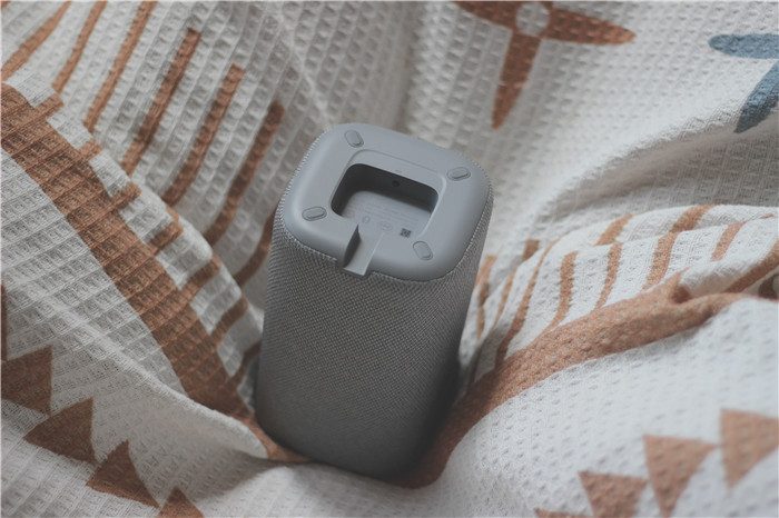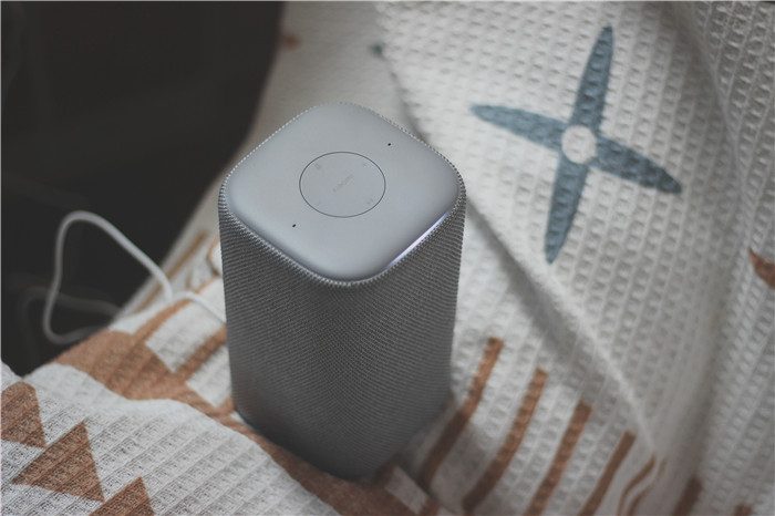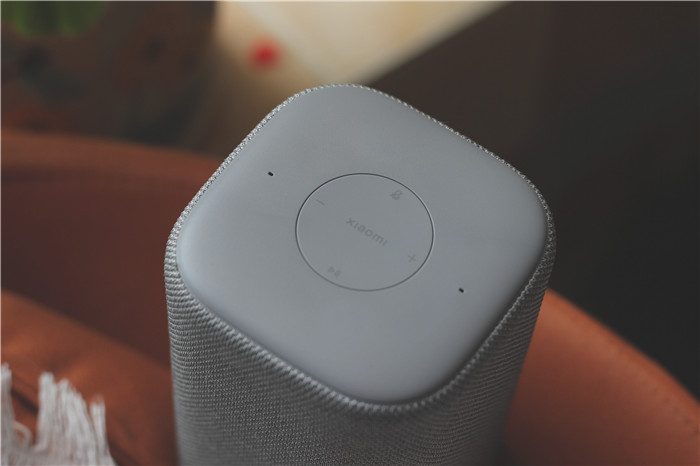 打开包装盒就可以发现这款小米智能音箱本体,相比之前的小爱音箱,这款周围则用上了浅灰柔软网布结构,编织网面包裹,而且整体上显得非常圆润,也很有质感,相比之前要么白色要么黑色精致了许多。