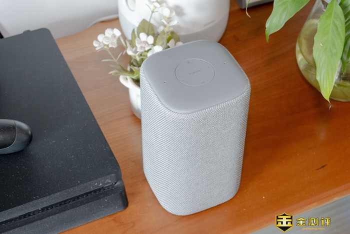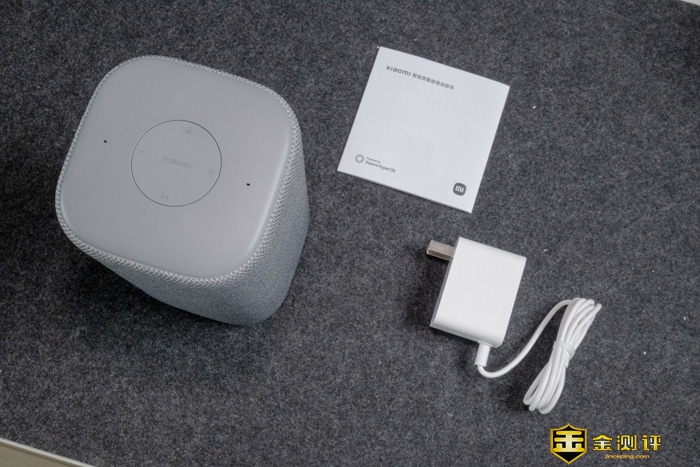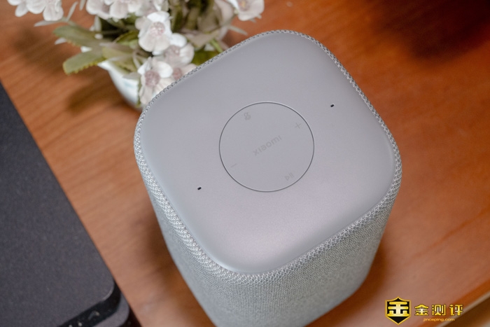 音箱顶部为磨砂的塑料材质,中间嵌有一块独立的圆形操控区,配备了播放/暂停键、音量-按键、音量+按键、禁麦键,上面还有“XIAOMI”字样,两侧为麦克风收音孔。侧边区域内置了灵动交互灯,在使用过程中,灯光会根据不同的指令和操作状态呈现出不同的效果,比如在唤醒时灯光会亮起,为用户带来直观的反馈,增加了使用的趣味性和科技感。