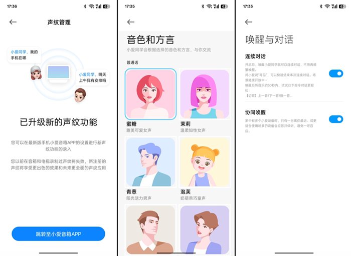 它支持连续的语音对话,不用每次都用口令去唤醒。并且音箱对语音的识别非常准确,反应速度也很快,能立即对提问进行解答。有趣的是它能识别主人的声纹,还能选择不同的音色和方言,也增强了地域属性。
