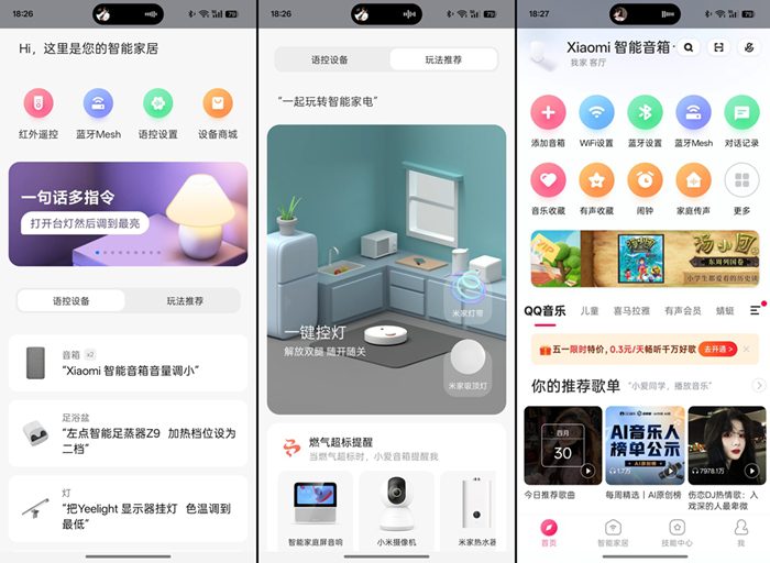 它的主要功能当然是通过语音来操控智能家电啦,并且它已经进化到了通过语音来自动化创建场景,既能够实现对单设备的多指令操控,也能实现多设备多指令操控,比之前的小爱音箱变得聪明强大了许多。