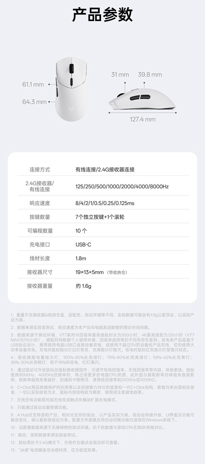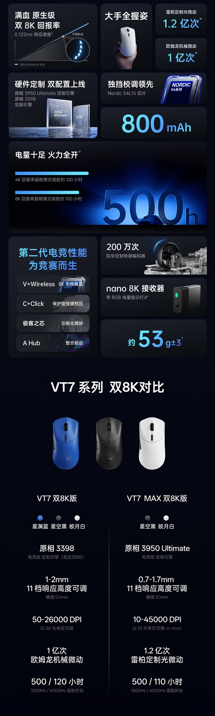 Rapoo雷柏VT7系列双8K双模无线电竞鼠标怎么样呢?一起来看看实际的使用体验:【金测评】雷柏VT7系列电竞无线鼠标评测:只要199起就将鼠标卷入次世代【金测评】双剑合璧,雷柏VT7 & VT7MAX:国产电竞鼠标的革新之作【金测评】电竞无缝搭子-雷柏VT7 双8K版系列鼠标【金测评】全面升级,兼顾性能与舒适,雷柏 VT7 系列鼠标轻体验【金测评】雷柏VT7 MAX性能狂飙,20000FPS狂暴扫描的「电竞核武」 ——大手玩家的终极无线性能解决方案【金测评】雷柏VT7系列电竞鼠标深度体验:原生双8K时代的全能战士【金测评】无线原生双8K,强到没对手?雷柏VT7、VT7Max电竞鼠标该怎么选?【金测评】雷柏鼠标全面进化!从手感升级到性能!雷柏VT7系列评测【金测评】雷柏VT7系列无线鼠标:狂暴竞技模式+原生双8K,极致性能!【金测评】大手电竞怪兽,雷柏VT7 VT7 MAX、Nordic 54跨代芯片带来强悍性能