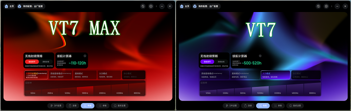 VT7系列还为不同使用场景提供了多种模式选择:包括“狂暴竞技模式”(MAX版)、“竞技超核模式”、“火力模式”等。