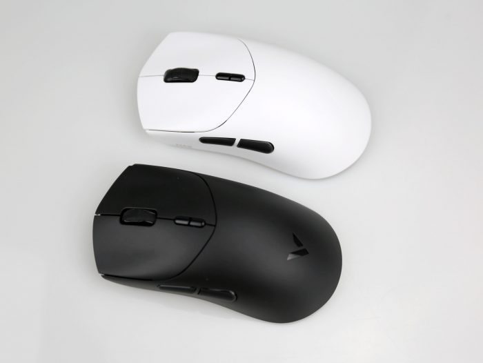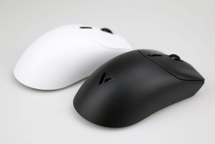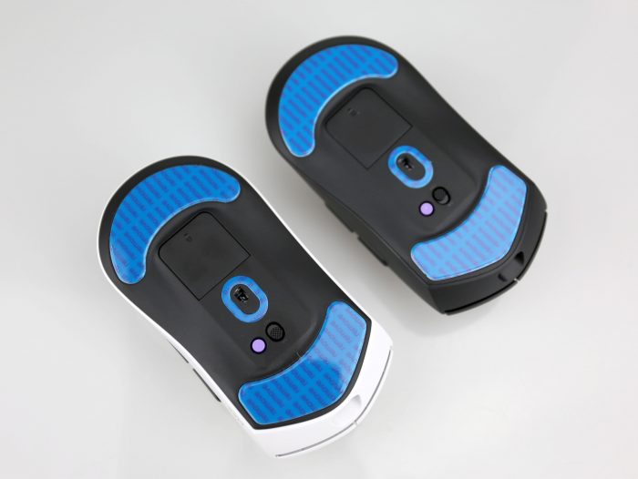 两款鼠标外壳都采用类肤磨砂处理,触感细腻防滑,对汗手用户相当友好。鼠标腰身左侧裙微微内收,右侧裙平滑延伸,背部弧度贴合掌心,长时间握持不易疲劳。