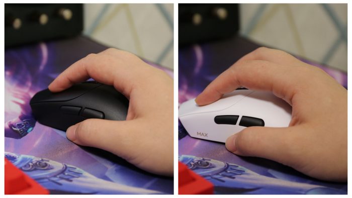 外观方面,两款鼠标完全一致,均采用右手人体工学型对称设计,尺寸为 127.4×64.3×39.8mm,大手用户在使用抓握、趴握和指握三种握姿,都能完美驾驭,而且鼠标按键处还设计有手指凹槽,让控制更稳定。