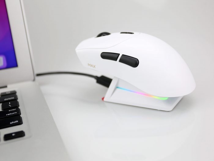 在重量上,VT7 和 VT7 Max均为53克±3克,属于轻量级电竞鼠标的范围。这两款鼠标无论是外观 、按键、握持手感、还是重量上可以说完全一致,唯一不同的地方可能就在于Max版本在鼠标右侧多了一个Max的标识。