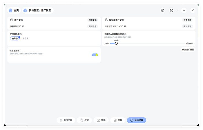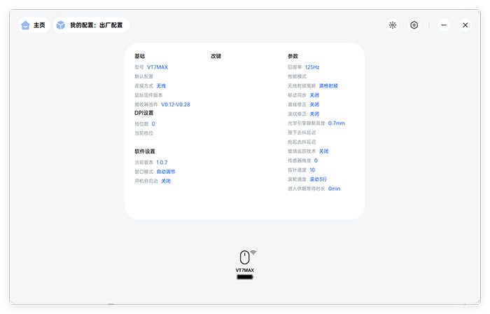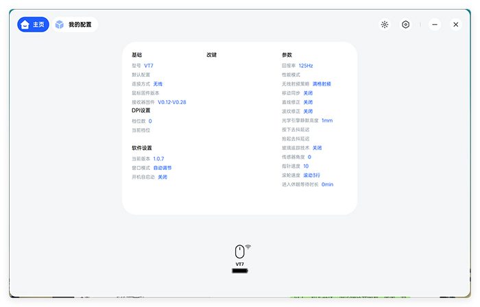 基本的参数调节也不能缺席。前面介绍过VT7的硬件升级,基于这些硬件配置,驱动程序中可以选择调整很多不同的配置,比如光学引擎的静默高度可以有11档覆盖1-2mm的高度范围,比如可以自定义的按键防抖延迟设置等等。