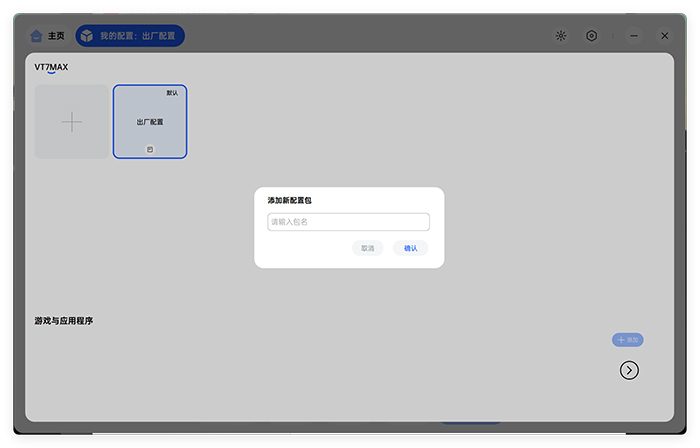A hub的操作界面进行了更新,和以往的驱动风格完全不一样,可以说是全新的设计风格。对于VT7 MAX来说,正常连接后,驱动程序就可以看到当前的配置信息。