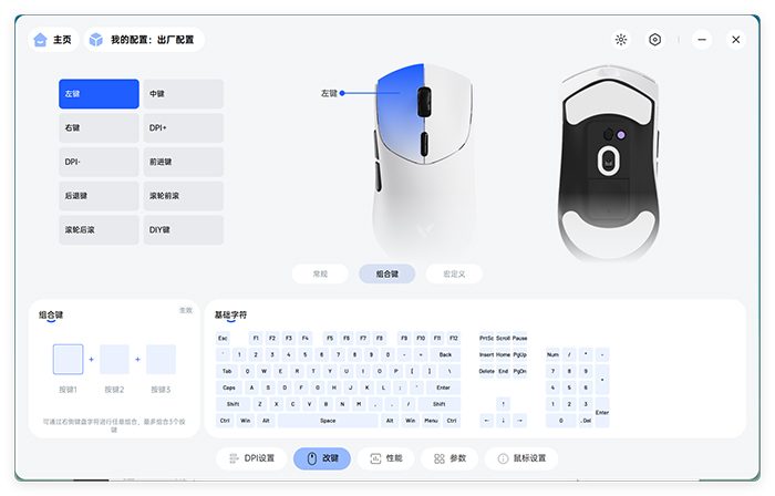 雷柏VT7 MAX共有9枚物理按键+1枚自定义按键(在鼠标底部),通过驱动程序可以进行按键功能自定义。