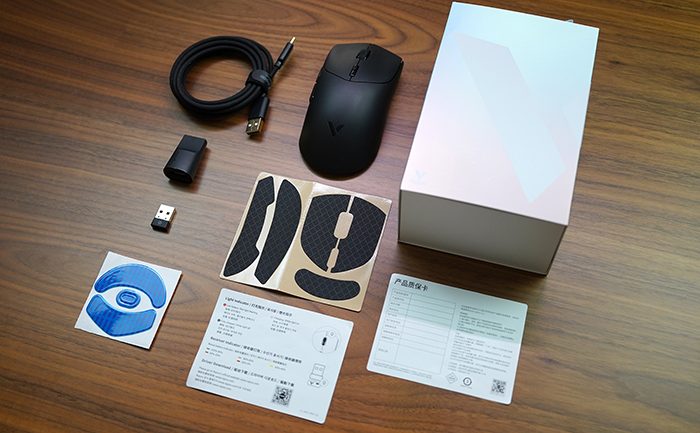 最近雷柏更新了VT系鼠标产品的产品线,可以说是“大规模”更新。于是我就入手了VT系列下最新鼠标产品——VT7。VT系列一直定位都是游戏鼠标,所以相较于其他鼠标而言,在包装中多了很多电竞鼠标才需要的配件——可更换的脚垫、鼠标按键防滑贴、接收器延长线等。我这次入手的VT7是一个黑色的版本,看起来更加沉稳大气,也能够更容易的融入不同的桌面环境。