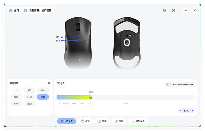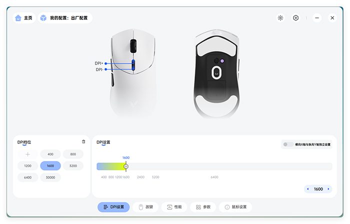 这里还值得一提的是,雷柏VT7 系列两个型号鼠标同样支持X Y轴独立配置DPI,对于一些特殊的应用场景来说非常方便。