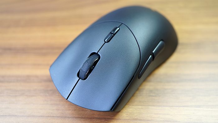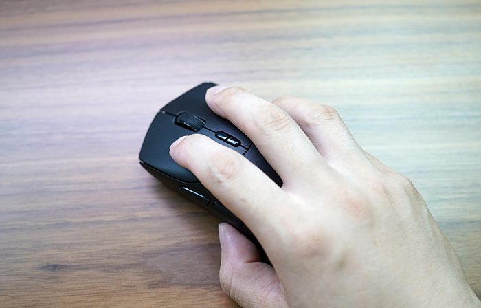 同时,整个机身采用磨砂PC材质,质感细腻,触感舒适,即便是像我这样的汗手也不会出现问题。整体造型会适合多种不同的握持方式,包括抓握、趴握、指握。