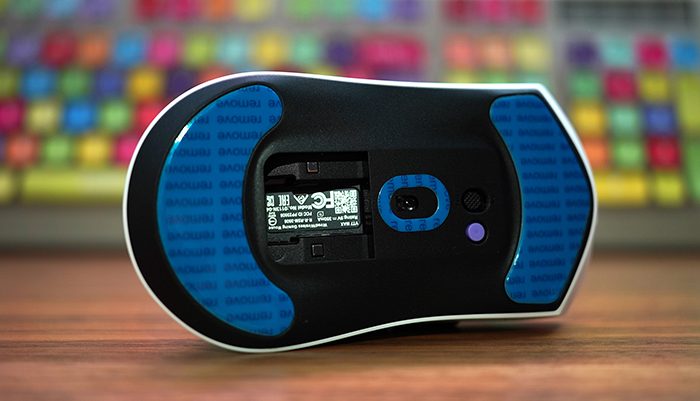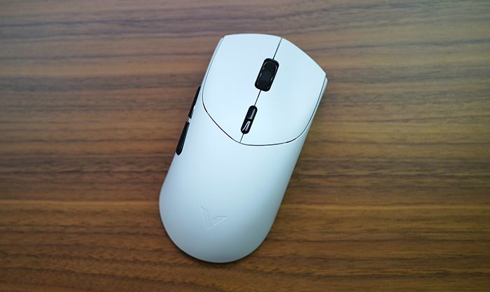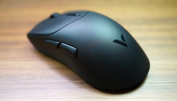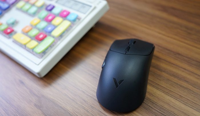 雷柏VT7的两侧弯曲的弧线有一定的对称感,这样能够保证手握的时候有比较强的舒适感。同时左右按键都进行了凹陷设计,有明确的手指定位。