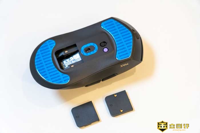 雷柏VT7的底部仍然有着完全一样的特氟龙脚垫,并也有一颗额外的DIY调制键,可通过驱动更改按键功能。同样也有可替换的座充充电模块。