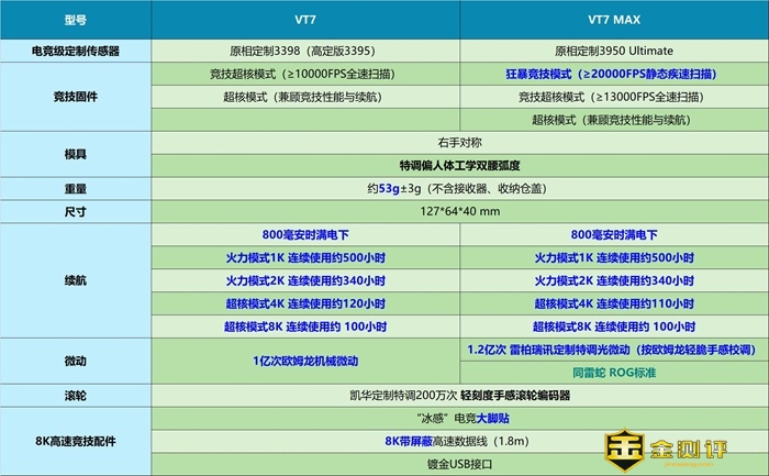 可以看到,两者性能上区别还是有一些的,主要是定制传感器和微动的区别,并且性能模式也略有差别。简单的来说,MAX版性能更发烧,更专业,定制更电竞,适合对游戏有着极致追求的发烧友使用。而一般人,就算是VT7也完全够用了,更适合追求性价比的玩家。