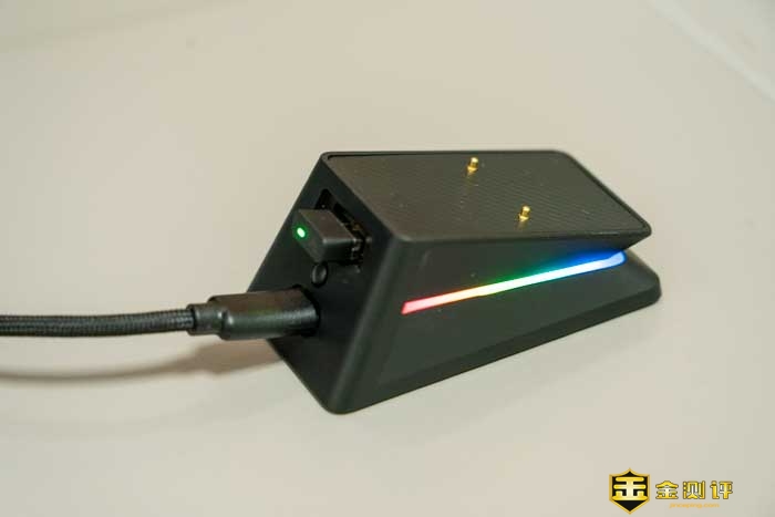 来了,就是这款 雷柏P5 触点充电底座,它具有幻彩RGB背光,好看的同时还有实用的功能,那就是它可以让雷柏的MT760/VT1/VT3/VT9/V300等系列鼠标实现无线座充功能,充电再也用不捅USB接口了,直接轻轻一放即可。