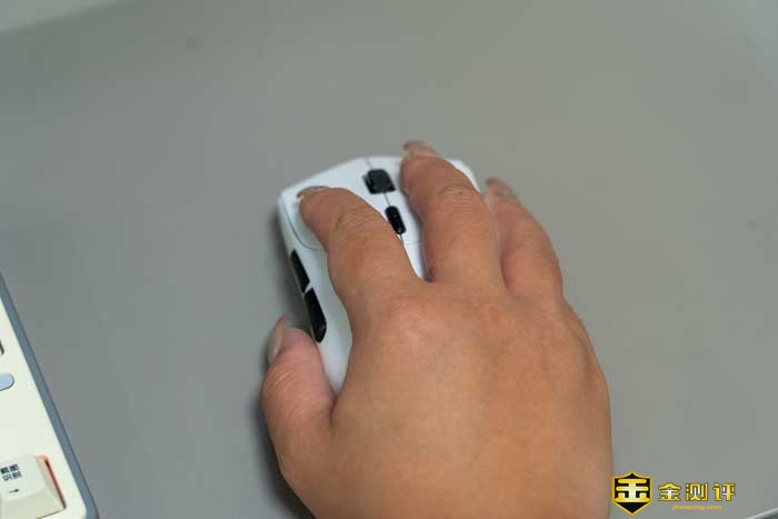 在鼠标的两侧,还有特别调整设计的两侧弧度曲线,让鼠标的整体贴合人手,有更好的人体工学造型,当鼠标抓在手中的时候,左侧的内收曲线更满足拇指锁定鼠标,如同人鼠合一一般,手指哪鼠标就移动到哪,干脆利索。