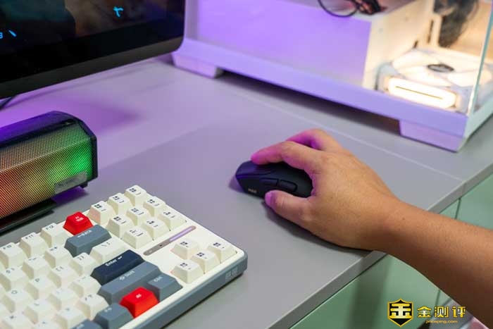 另外它的炫彩RGB灯还可以通过按键调整颜色,小小的一个配件,也能给桌面增加不少电竞氛围感,好用的同时还得好看。