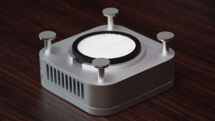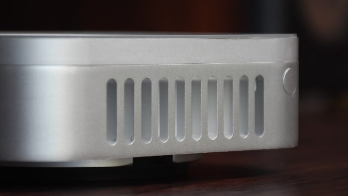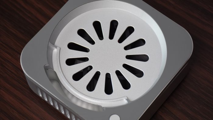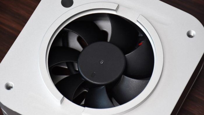 作为Macmini M4的专属配件,外观也是满满的“苹果风”。银色铝合金机身用料扎实,单就一个散热器重量就有830克,正二八经的“铝坨坨”。并且它的工艺细节也很不错,铝合金切割以及表面的阳极氧化处理都十分细致,精致感不输Macmini本身。