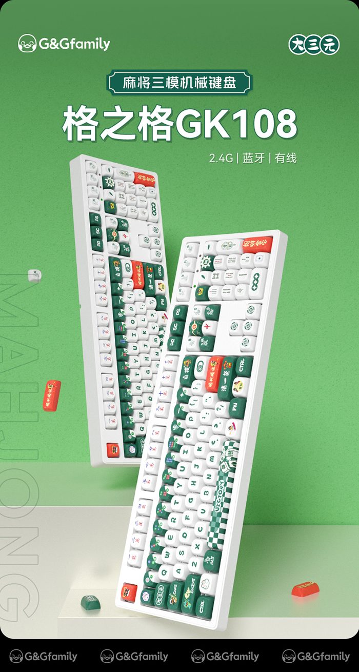 本次为大家带来“格之格GK108麻将键盘无线机械键盘”的试用,一起来看看吧。 金测评希望你客观、专业、场景化的真实体验分享,而且众测报告必须是100%原创,抄袭将永久拉入黑名单。