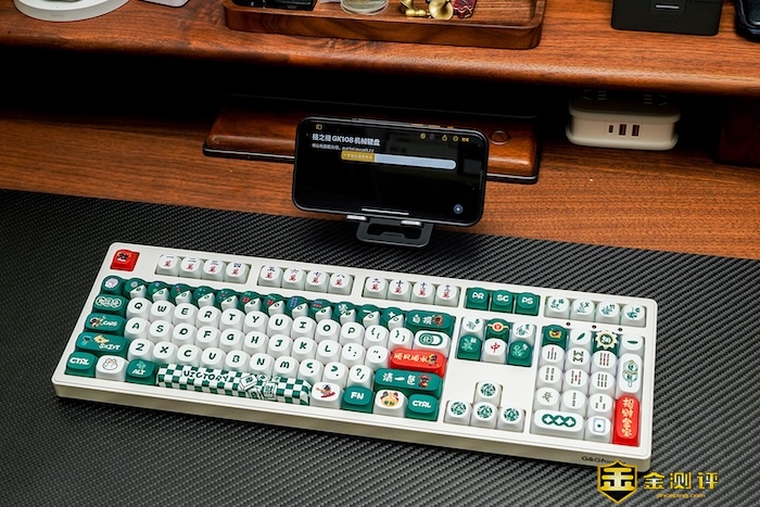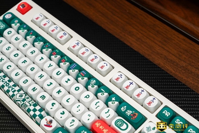 格之格GK108不光是一款麻将主题键帽的机械键盘,按键音也是当下流行的麻将音,就是在敲击的时候,按键音类似于麻将洗牌那种清脆、短促、有节奏感的声音,听起来非常有魔性。