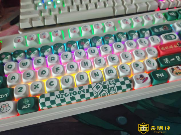 最后让我感叹一下格之格GK108三模机械键盘吧:PBT材质,五面热升华工艺,图案清晰颜色准确,键帽久用不易磨损图案。图案好看不重复,键帽以及整个键盘边角都非常的光滑,摸着很舒服,让人爱不释手。