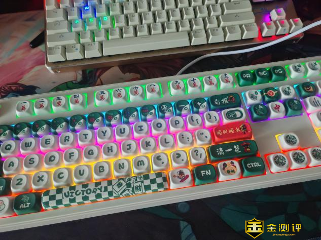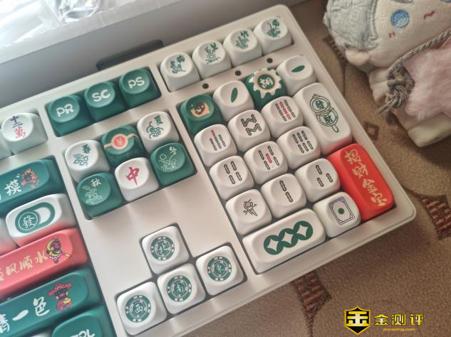 外观上来看,麻将键帽还是非常的让人眼前一亮的,对于喜欢打麻将的人来说,应该也是一种特别亲切的存在。另外,绿色系配色对眼睛感觉也非常的友好,不用担心时间看长了键盘会不舒服。不过话说回来,很多人键盘都盲打了,好像也不太在意配色,但是自己喜欢的配色电子产品使用起来还是会让人心情更愉悦。毕竟,上班都已经够烦躁了,键盘用自己喜欢的也是非常有必要的。