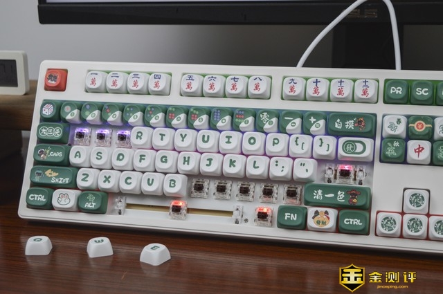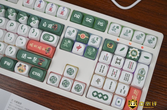 作为厂家迎合追求个性化消费者的迭代之作,GK108无线三模机械键盘有着贴合麻将主题的外观展现,配列实用外观淡雅自然,是一款比较合眼缘的视觉佳品。