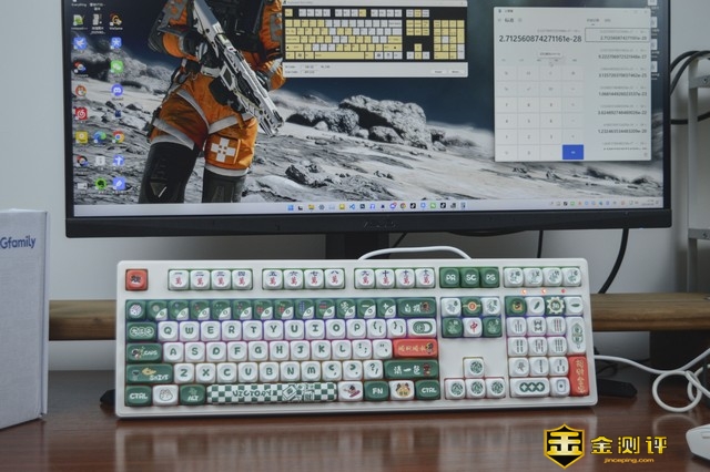 桌面搭配方面还是非常出色的,整体白绿的清新设计可以点缀暗沉的桌面,无论是黑白调的鼠标垫还是原木色的桌面都没有明显的违和感。非悬浮式设计加上紧凑的布局让键盘在外观上颇为出挑,蓝牙、2.4G无线连接扩展了产品的使用场景。麻将特色主题全尺寸竞品中相当出挑,此外优秀的续航也是让产品在产品兼具了美观和实用,对于全尺寸用户来说无疑是一款外观表现和手感回馈及无线体验都能谈得上不俗的桌搭好物,对于雀友桌搭党值得推荐!