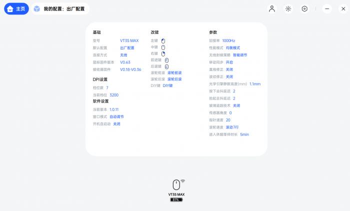 VT3s和VT3系列预设多种性能模式,满足不同使用需求:狂暴竞技模式(≥20000FPS静态疾速扫描,MAX版):极致响应,专为职业级操作准备;竞技超核模式(≥13000FPS静态全速扫描,MAX版,标准版是≥10000DPS静态全速扫描):平衡性能与功耗;超核模式(动态竞技固件);火力模式(游戏固件);均衡模式(平衡固件)与办公模式(节能固件):一键切换,智能适配场景。结合驱动中的“配置文件随应用切换”功能,真正做到“一鼠走天下”,无论你是职业选手、主播达人,还是日常办公族,都能找到最适合自己的状态。