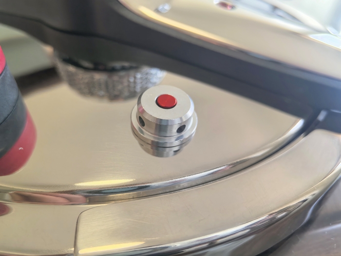 帝伯朗星驰压力锅为三档可调,分别是中低压档(60kPa)、高压档(100kPa)和泄气档。针对不同的食材,可以选择不同的压力档位。档位的选择,通过锅盖上调压泄气阀位置的旋转拨件进行选择。