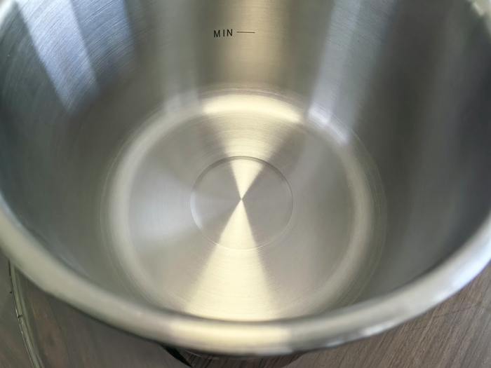 锅体304加厚不锈钢一体设计,材质方面使用寿命长,具有导热均匀、传热快、保温持久、不串味的效果,同时表面没有添加涂层,烹饪过程既具健康安全。另外,内胆壁标有烹饪刻度线,在保证安全的同时,还能便于各式食材的烹饪!