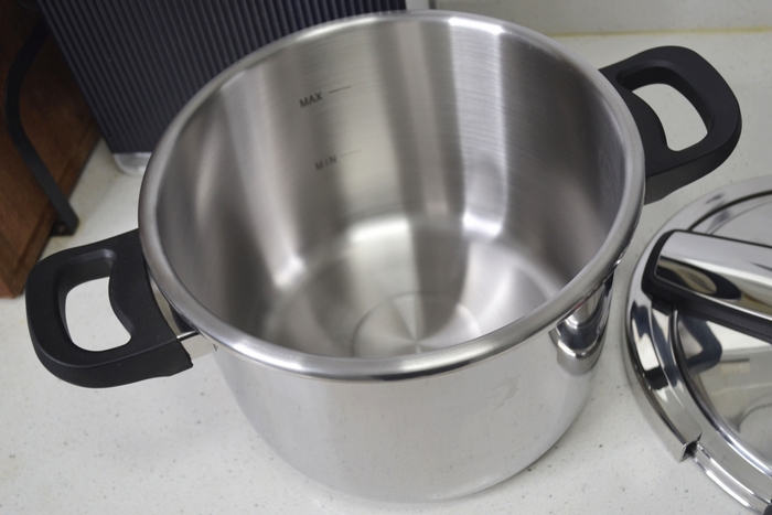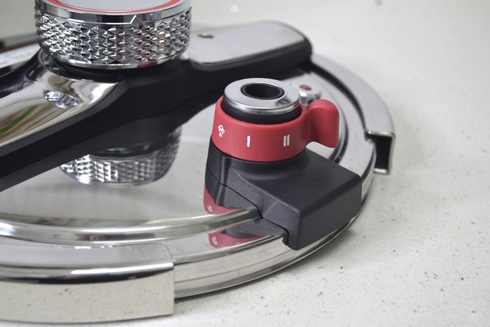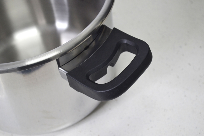 最让我眼前一亮的是它的锅盖设计。以前用传统压力锅,都是旋转握把锁锅,操作略显繁琐,而帝伯朗星驰
