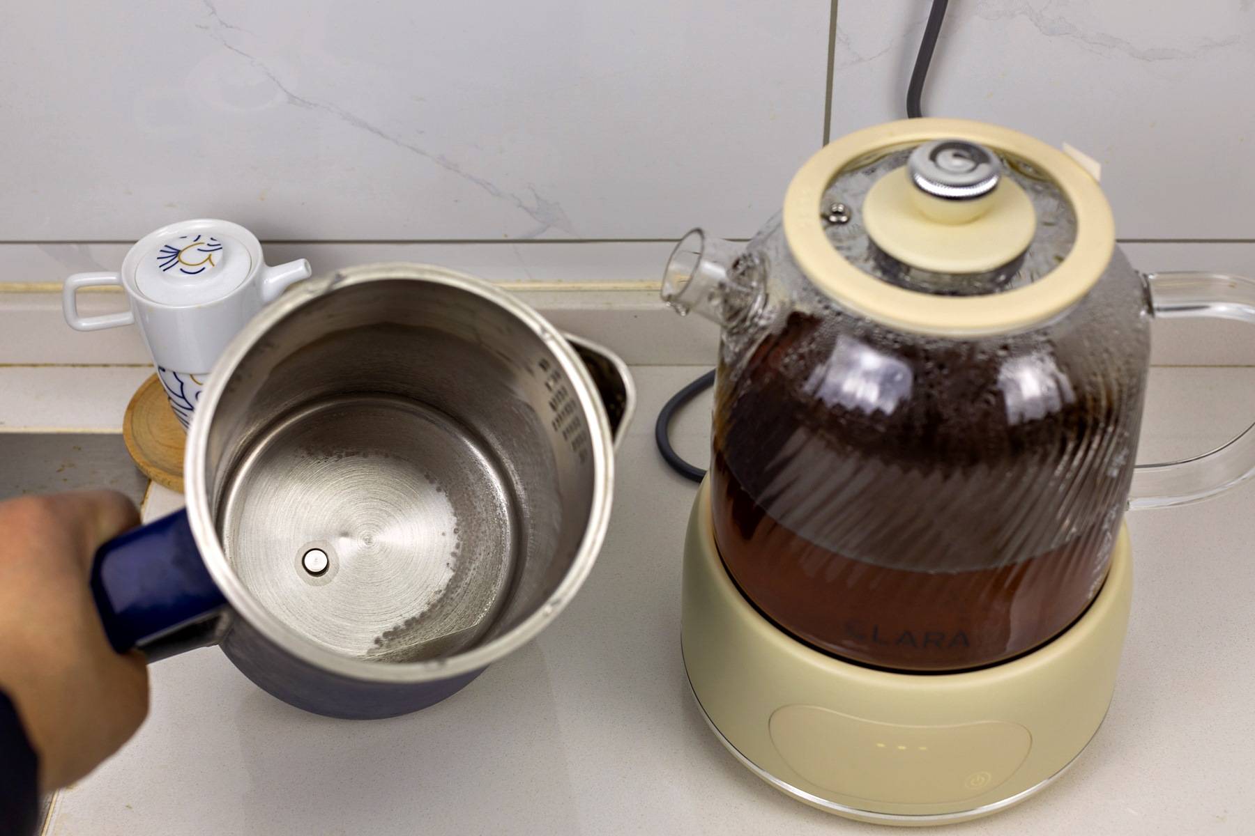 clara可莱养生壶1.6L的大容量设计也是这款养生壶的另一大亮点。这个容量非常适合3-5人的家庭使用,一次煮茶即可满足全家人的需求,避免了反复煮水的麻烦。对于办公室使用场景来说,这个容量也恰到好处,可以满足一天的饮茶需求。而且煮茶过程中噪音很小,办公室里也不会影响正常工作或交谈。