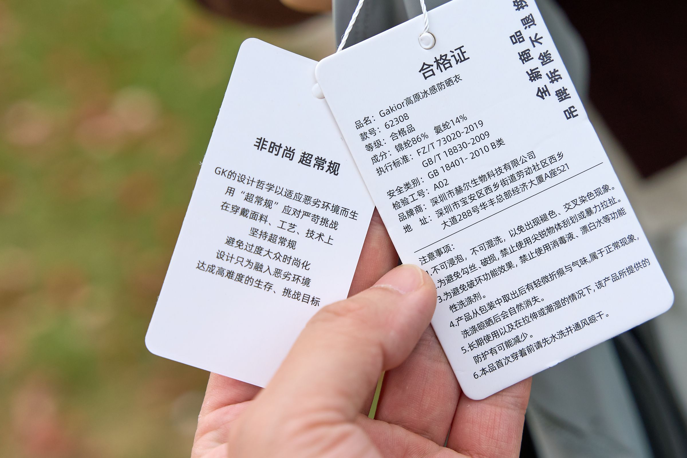 那就洗完再测测更放心。这件GaKior真不一样,它不是靠涂层防晒,是把防晒因子做进了纤维里,360°OPAC全波段阻隔+双层TiO₂防晒因子,官方说能扛3000次水洗,还有5年的防晒抗衰减认证。